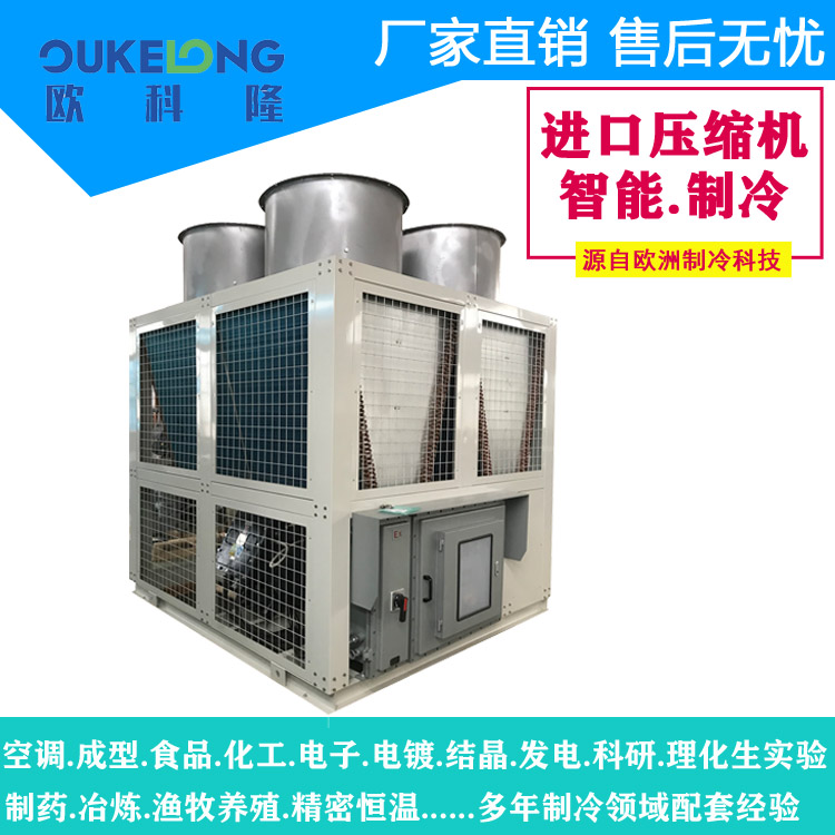 歐科隆Ex風冷螺桿式防爆冷水機組是一款通過國家防爆認證(Ex dⅡB T4 Gb)的專業工業制冷設備,整機防爆設計符合GB3836標準,專為石油、化工、制藥等易燃易爆場所提供安全可靠的制冷解決方案。