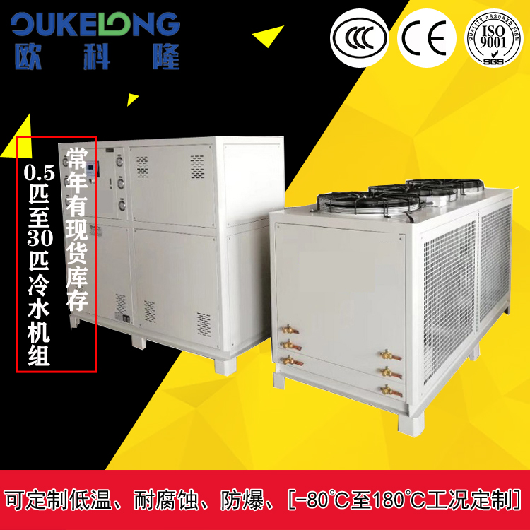 歐科隆牌風(fēng)冷式冷水機(jī)之制冷心臟采用全密封低噪音,振動(dòng)小,高效能省電進(jìn)口名牌壓縮機(jī),電器控制全部采用進(jìn)口名牌原件,熱交換器采用殼管式冷凝器,換熱效能高,便于清洗保養(yǎng)。